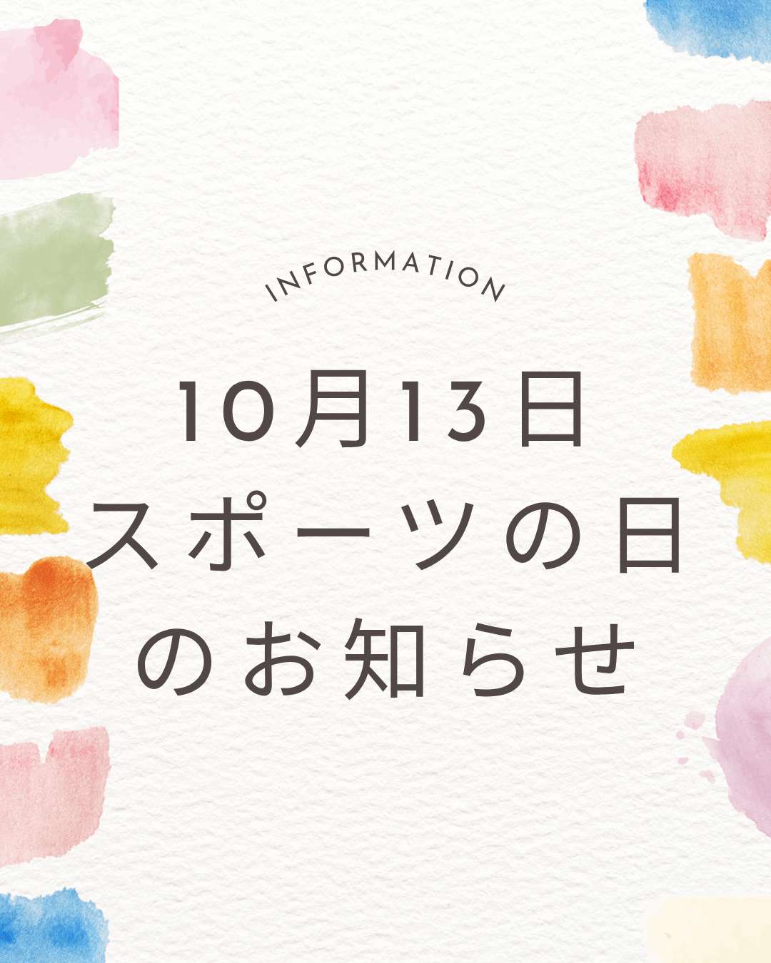 HOME > 投稿ページ > お知らせ > お知らせ 10月13日(月)スポーツの日のお知らせ〜鹿児島県出水市にある整骨院〜 2025年10月2日 10月13日(月)スポーツの日はお休みいたします。 ご不便おかけしますが、よろしくお願いいたします。 有馬整骨院へのアクセス 住所 〒899-0121 鹿児島県出水市米ノ津町11-44 最寄り駅 米ノ津駅より徒歩9分 電話番号 0996-67-4151 営業時間 平日 8:30 〜 18:30(休憩 12:30 〜 14:00) 土曜 8:30 〜 12:30 ※午後は休診 日曜休み 祝日不定休 Twitter Share Pocket Hatena LINE URLコピー -お知らせ