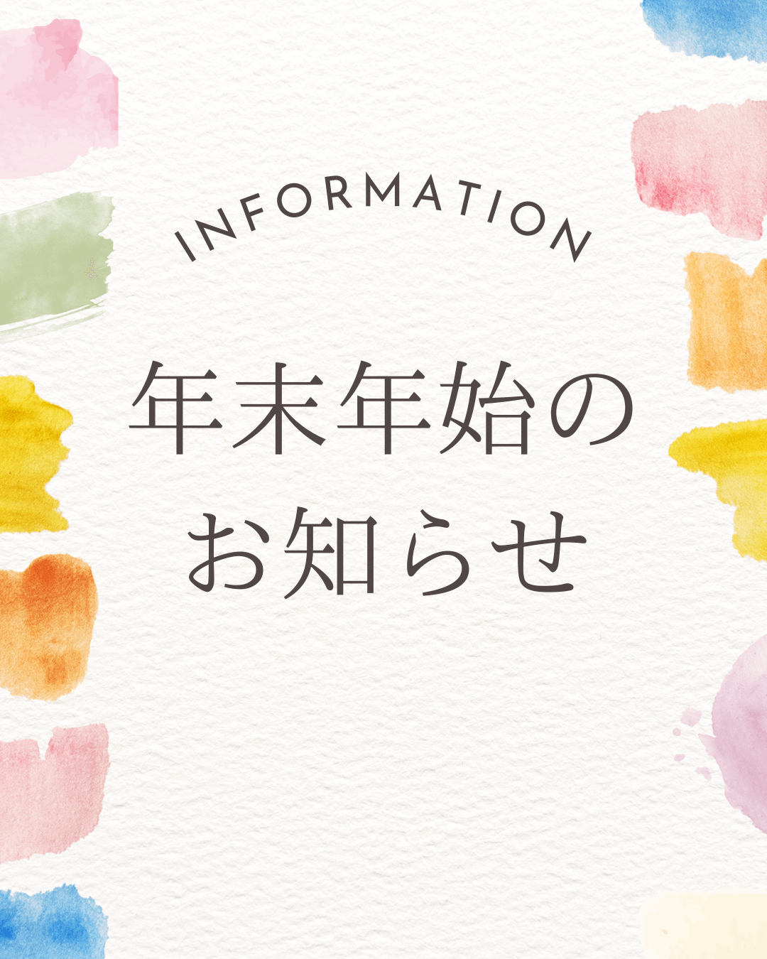 当院は令和7年12月29日午後〜令和8年1月4日までお休みします。